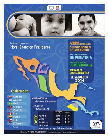 I CONGRESO MESOAMERICANO Y DEL CARIBE DE SALUD INTEGRAL DEL ADOLESCENTE • XXV CONGRESO NACIONAL DE PEDIATRÍA • XIII CONGRESO NACIONAL DE NEONATOLOGÍA XXVII Reunión Comité Adolescencia Asociación Latinoamericana de Pediatría 17,18 y 19 de Septiembre de 2014. San Salvador . El Salvador