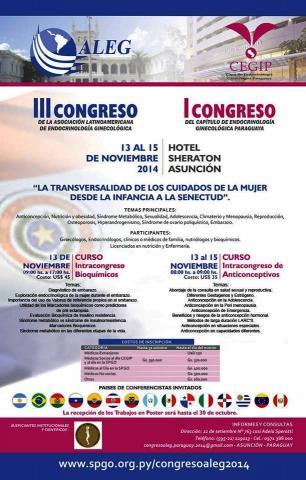 III Congreso de la Asoc. Latinoamericana de Endocrinología Ginecológica y I Congreso del Capítulo de Endocrinología Ginecologica Paraguaya 13-15 Noviembre de 2015 . Asunción . Paraguay