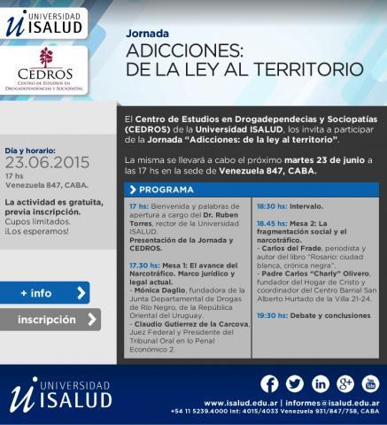Jornada Sobre Adicciones: De La Ley Al Territorio .Universidad ISALUD . 23 de Junio de 2015 . CABA
