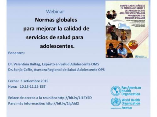 Webinar "Normas globales para mejorar la calidad de servicios de salud para adolescentes".