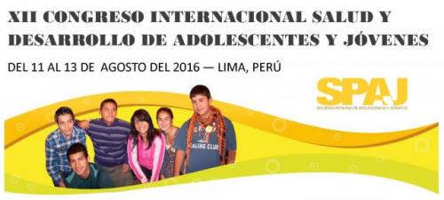 XII Congreso Internacional de Salud y Desarrollo de Adolescentes y Jóvenes.SPAJ - Sociedad Peruana de Adolescencia y Juventud.11 al 13 de Agosto del 2016. Lima Perú .