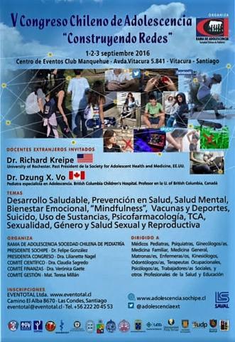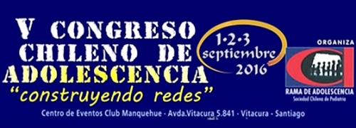 V Congreso Chileno de Adolescencia 1,2 y 3 de septiembre de 2016. Rama de Adolescencia Sociedad Chilena de Pediatría (Sochipe) Santiago de Chile.Chile