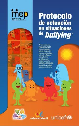http://www.codajic.org/node/2113 Protocolo de actuación en situaciones de bullying Costa Rica Autor: Ministerio de Educación Pública, Dirección de Vida Estudiantil, MEP Fondo de las Naciones Unidas para la Infancia UNICEF Documento: