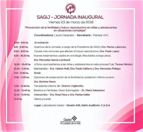 “Prevención de la fertilidad y futuro reproductivo en niñas y adolescentes en situaciones complejas”Jornada Inaugural SAGIJ 2018 Viernes 23 de marzo de 2018 Laboratorio Gador, Darwin 429, C.A.B:A