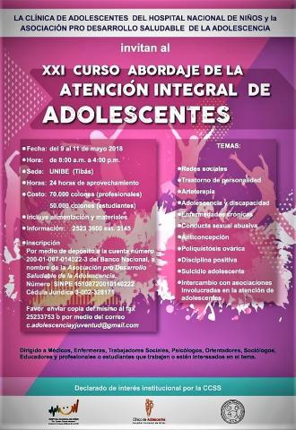 XXI Curso Abordaje de la Atención Integral de Adolescentes 9-11 de Mayo 2018 Universidad de Iberoamérica (UNIBE), Tibás. Costa Rica