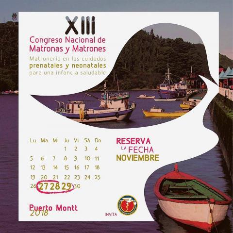 XIII Congreso Nacional de Matronas y Matrones, 27, 28 y 29 de noviembre de 2018 .Puerto Montt. Chile
