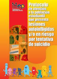 El Ministerio de Educación Pública (MEP), pone a disposición de toda la comunidad educativa del país, el Protocolo de atención a la población estudiantil que presenta lesiones autoinflingidas y/o en riesgo por tentativa de suicidio, con el fin de brindar información sobre la temática y guiar las acciones para la actuación de los centros educativos al identificar población en condiciones de vulnerabilidad y además, para la promoción de factores protectores y de prevención del riesgo.