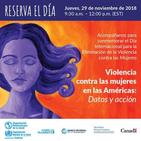 Con el fin de conmemora el Día Internacional para la Eliminación de la Violencia Contra las Mujeres, la Organización Panamericana de la Salud (OPS/OMS) realizará el evento "Violencia contra las mujeres en las Américas: Datos y acción". Este evento, que se llevará a cabo el jueves 29 de noviembre, está organizado en colaboración con el Banco Mundial, el Instituto Global de las Mujeres de la Universidad George Washington, la Representación Permanente de Canadá ante la Organización de Estados Americanos (OEA) y ONU Mujeres Caribe.