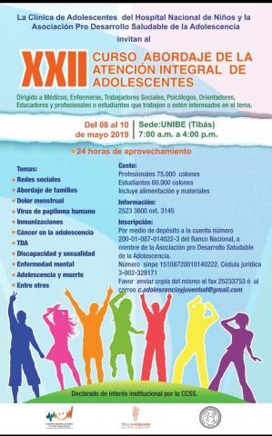 XXII Curso Abordaje de la Atención Integral de Adolescentes . 8-10 de mayo de 2019 . UNIBE Tiba San José- Costa Rica