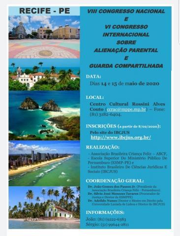 VIII Congresso Nacional - Vi Congresso Internacional sobre Alienação Parental e Guarda Compartilhada-14 e 15 de maio de 2020 Centro Cultural Rossini Alves Couto Recife - PE Brasil