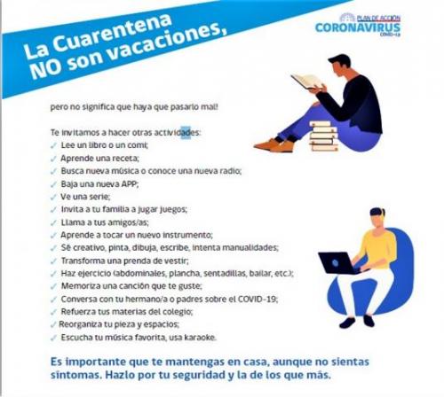 http://www.codajic.org/node/4334 Recomendaciones de abordaje prevención por COVID – 19 en población adolescente y joven en contexto de cuarentena. Autor: Subsecretaría de Salud Pública División de Prevención y Control de Enfermedades | Departamento de Ciclo Vital Chile Marzo 2020