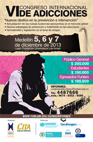 VI Congreso Internacional de Adicciones: Nuevos desafíos en la prevención e intervención 5-7 Diciembre 2013 - Medellin -Colombia